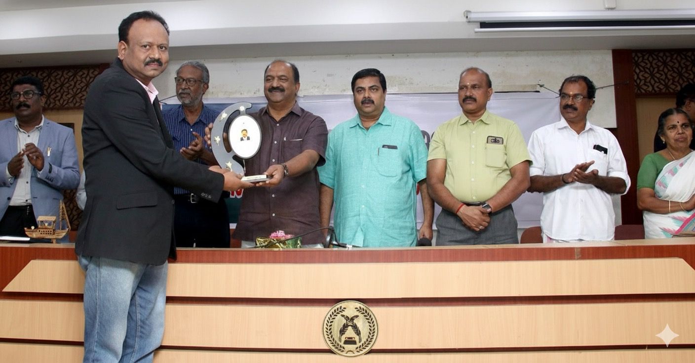 Receiving excellence award from Kerala finance minister Sri Balagopal for his 26 years excellent Ayurvedic practice in Europe Middle East and India